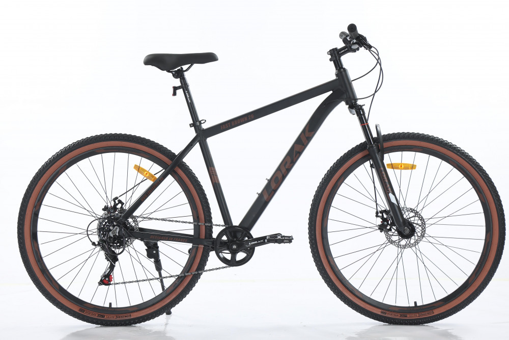 LORAK Fast Brown 29 - доступный хартдтейл на алюминиевой раме с кассетой от Шимано. Вы можете подобрать себе удобную по размеру раму, т.к. данная модель выпускается в нескольких ростовках. 29 колеса собраны на двухстеночных ободах с алюминиевыми втулками на промподшипниках, оригинальные шифтер и задний переключатель от Shimano. Вилка с регулировкой и возможностью блокировки, широкий руль, удобное сиденье добавят комфорт в катании.